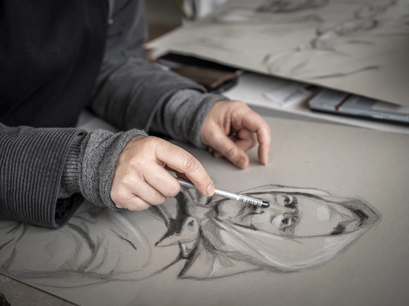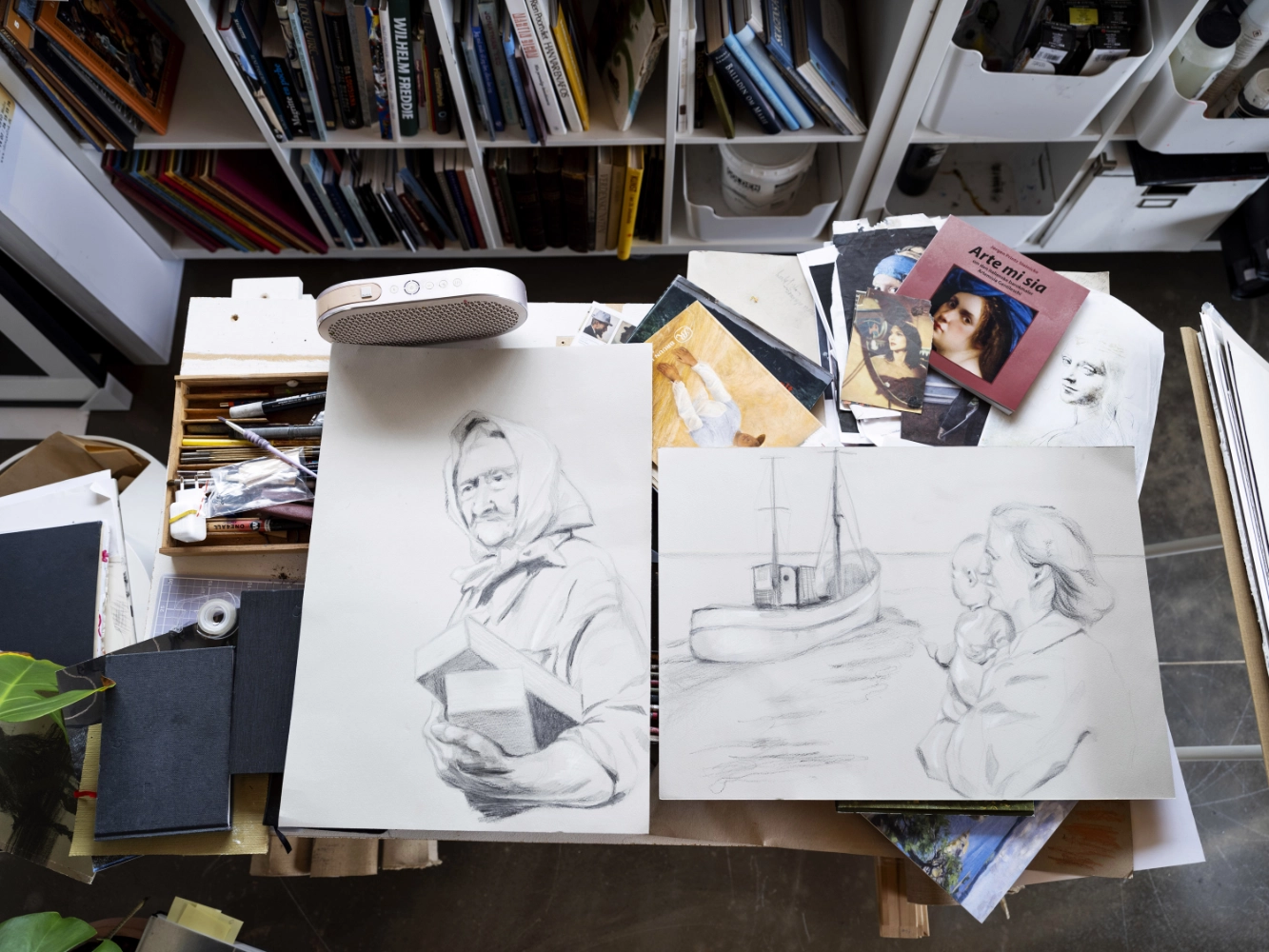 Jeg har siden 2015 arbejdet med kunstprojektet KVINDER DER FORANDRER VERDEN, der understøtter FN’s 5. verdensmål om ligestilling mellem kønnene. Her portrætterer jeg kvindelige rollemodeller samt kvindegrupper, historiske og nulevende. I værkstedet kan du lige nu se portrætter af blandt andre; Anna Ancher, Karen Blixen, Johanne Louise Heiberg, Suzanne Brøgger, Margrethe Vestager, Puk Damsgaard, Helle Thorning-Schmidt samt fra seneste udstillinger; Bente Scavenius og Mia Wagner.