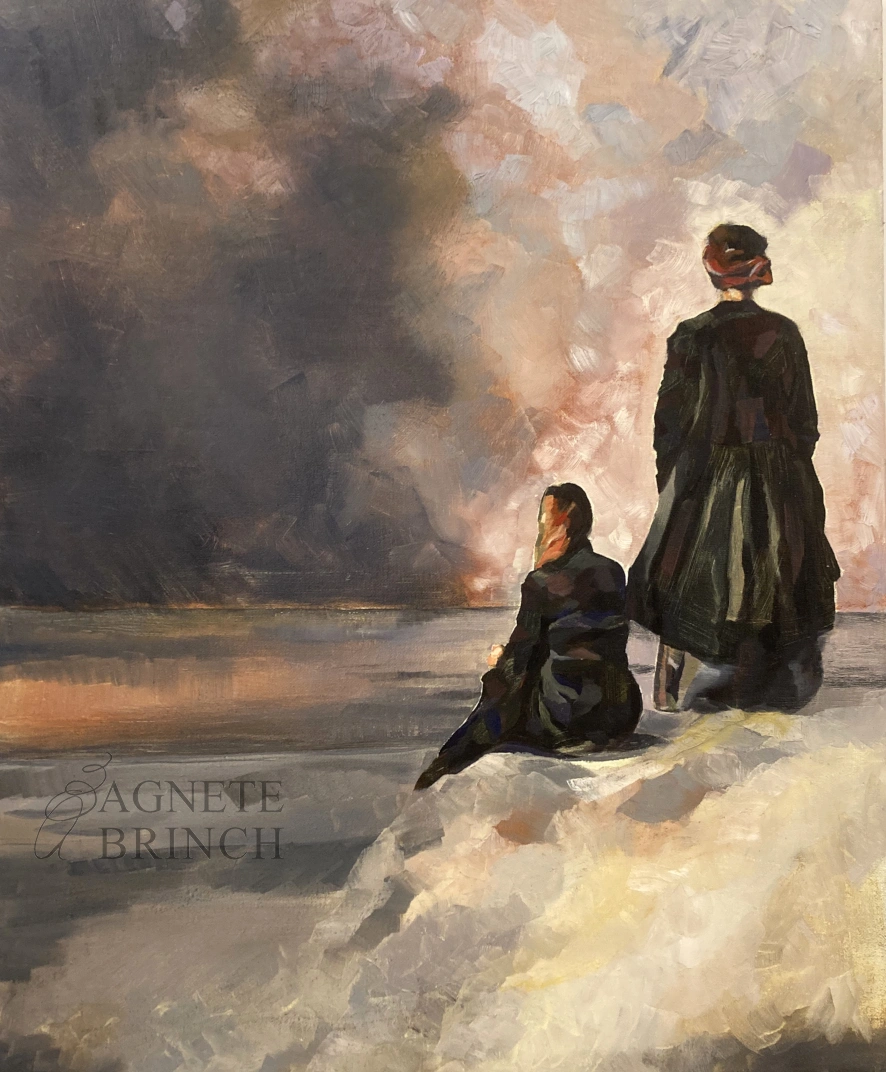 I Nymindegab opstod sidst i 1800-tallet en kunstnerkoloni, som malede naturen og det daglige, slidsomme liv i datidens fiskerleje. Jeg er fascineret af deres fortolkninger og har været så heldig at kunne male inde på Nymindegab Museum omgivet af deres værker, ligesom jeg har haft staffeliet med ude i det klitlandskab, hvor de stod for 140 år siden. Jeg krydser mine egne spor og mine formødres i den del af Danmark, som for mig er eventyrets og mit barndommens land.